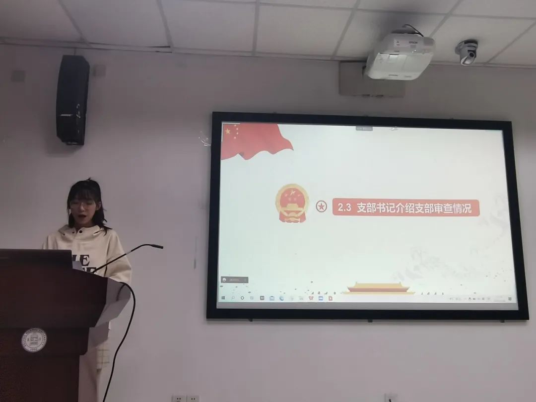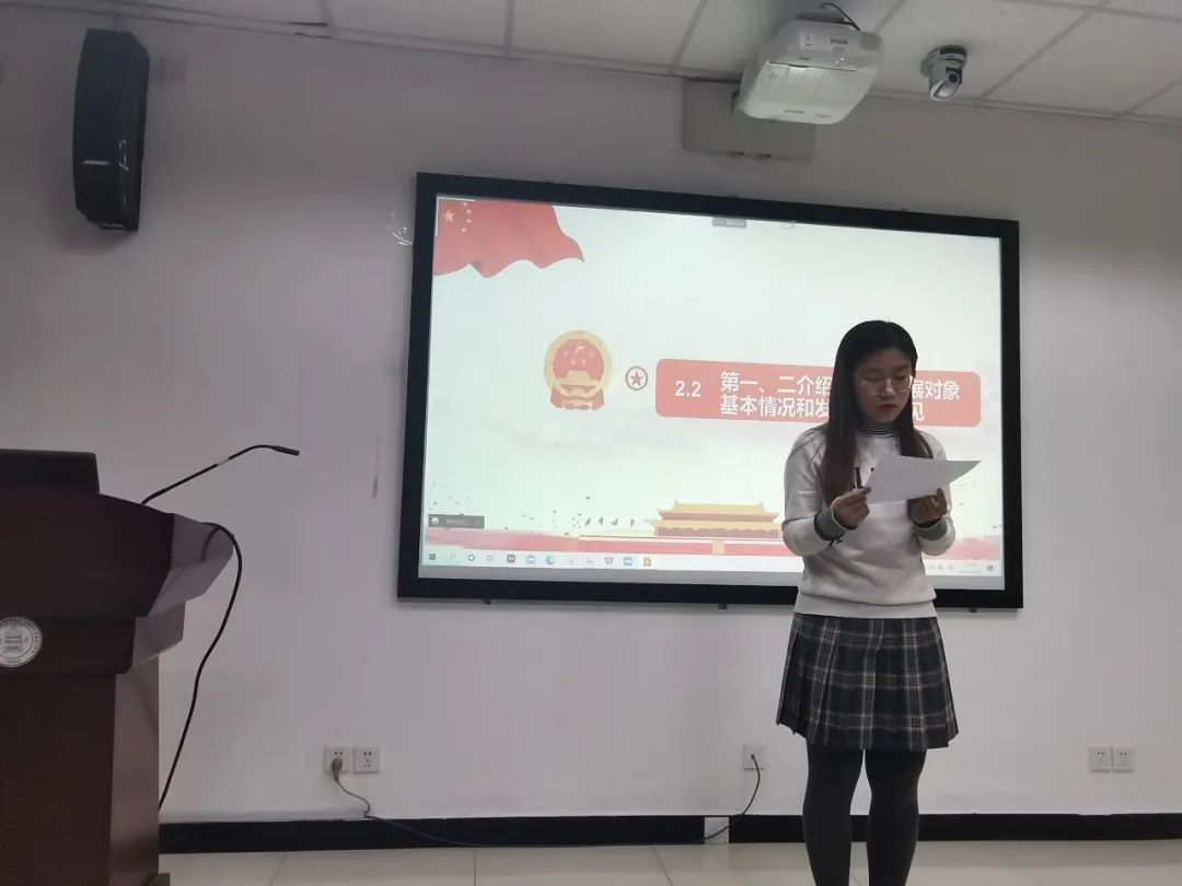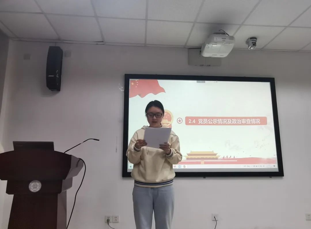 最后,由郭俊奇老师发表总结讲话:党员发展关系到党的事业的蓬勃发展,加入中国共产党意味着实现光荣与梦想,同时也意味着践行义务和责任。郭老师寄语党支部的同志们:党支部的每位同志应以中共党员的标准严格要求自己,从思想和行动上不断完善自己,要把个人奋斗的目标和实现中华民族伟大复兴的中国梦结合起来。我们中国共产党交出了非常优秀的历史答卷。新起点,新征程,我们又一次踏上了赶考之路,时代是出卷人,我们是答卷人,作为青年党员的我们,应不忘初心、砥砺前行,披荆斩棘、勇往直前,用奋斗书写无悔的青春!
