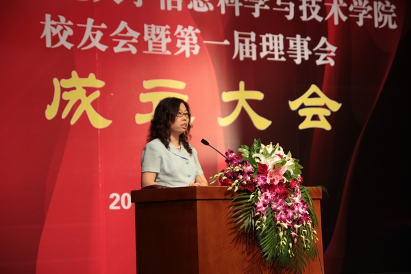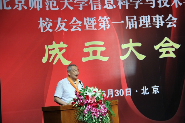 韩震副校长为大会题词:“信息时代,全球视野。”他对信息学院校友会成立表示祝贺,并指出信息学科有广阔的前景,相信信息学院会有更快更好地发展。会上,周明全院长向大会汇报了《信息学科建设工作情况》及 《校友会筹备情况说明》。校友总会执行秘书长郭军丽老师对学院校友会成立表示祝贺。戴汝为院士,何克抗教授,83届校友、中央电视台百家讲坛制片人万卫学长,86届校友、北京世纪晨公司总经理樊大翔学长,89届校友、北京麦特立达公司郑剑峰学长作为校友代表讲话,回顾了北师大信息学科成立的光辉历程,希望校友们一如既往地关心、支持母校,积极参与北师大信息学科的改革发展,成为京师信科与首都各界合作的桥梁,为京师信科的建设和发展献计、献策、支持、资助。师生朗诵《玉兰花开》,带校友们一同回顾了京师信科的成长、发展和壮大。