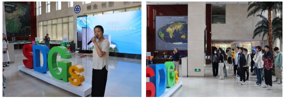 随后,同学们进入了可持续发展大数据国际研究中心(简称SDG中心),继续本次参观学习之旅。通过讲解人员的介绍,同学们了解到SDG中心是全球首个以大数据服务联合国可持续发展议程的国际科研机构。SDG中心致力于通过大数据驱动环境公域、城乡发展、粮食安全和能源脱碳等领域的监测、评估与预测,为解决中国和全球的重大可持续发展问题提供基础理论、技术方法、决策支持和智库服务。