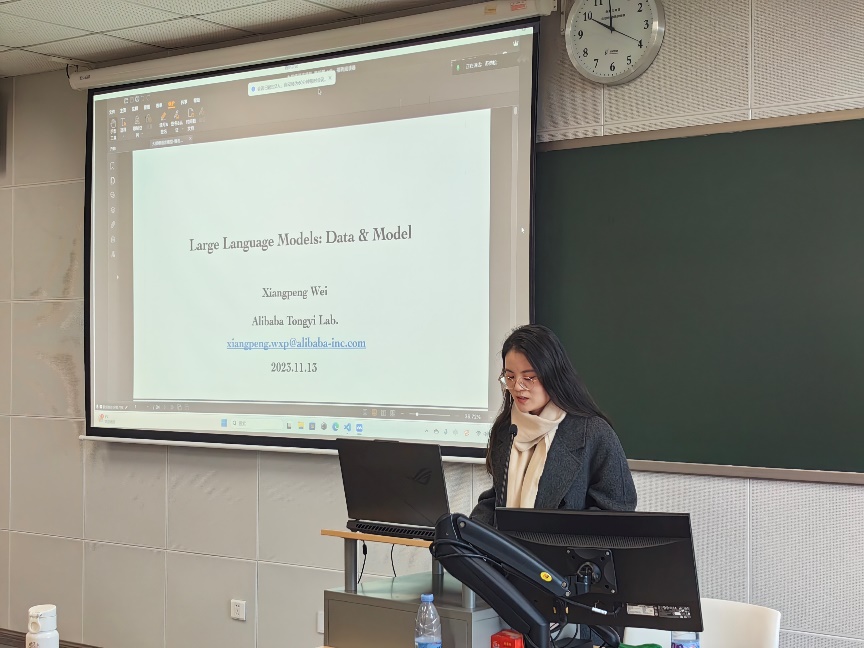 京师智能学术沙龙第十九期于11月13日上午10:00在昌平校区二教310成功举办。本次讲座邀请到了阿里巴巴集团高级算法专家魏相鹏博士和面壁智能研究员汪华东博士作为主讲嘉宾。魏相鹏老师为我们分享了主题为“大规模语言模型研究与应用:数据、模型和行业”的学术讲座,汪华东老师为我们分享了主题为“大模型技术:现状、挑战与机遇”的学术讲座。此次沙龙为同学们提供了一个学习前沿技术的机会,邀请人朱倩男老师主持本次沙龙。