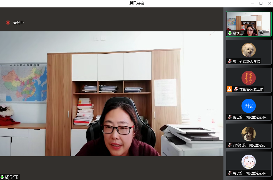 最后,杨学玉老师作总结。杨学玉老师指出,各个支部应采取党员、群众喜闻乐见的方式宣传党的路线方针政策等,让理论学习不流于形式;各个支部新学年的工作要围绕中央巡视整改、校党委工作和院党委工作,结合支部实际来进行谋划;各支部在疫情允许的情况下,要积极开展实践活动,广泛地落实群众服务工作;各支部要利用学院网站、学院公众号,大力宣传支部优秀的、有特色的党建活动,在全院起到示范引领作用。杨学玉老师表示,新学期开始后,院党委委员、各支部联络教师会更多参与到支部的活动和建设中。