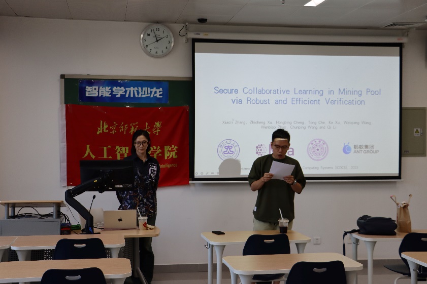为推动学术交流与科技创新,京师智能学术沙龙第十六期于10月3日下午2:00在昌平校区二教301成功举办。本次沙龙邀请到了浙江工业大学计算机学院讲师张晓丽博士作为嘉宾,开展了主题为“可信的协同学习”的学术报告。此次沙龙为同学们提供了一个学习前沿技术的机会,邀请人郭宇老师主持本次沙龙。