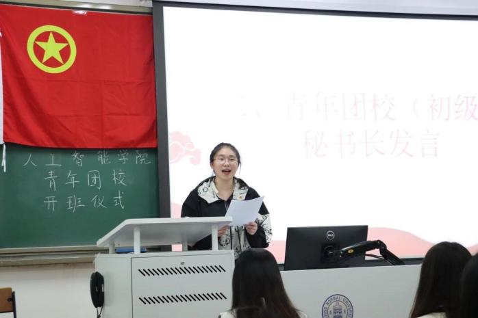 首先,全体成员奏唱团歌。然后,本期青年团校秘书长汪蘭珊进行发言。汪蘭珊同学介绍了举办青年团校(初级班)的目标与意义,引导学员们深入学习宣传贯彻党的二十大精神,鼓励所有学员勇立时代潮头,激扬青春力量,做“有理想、敢担当、能吃苦、肯奋斗”的新时代好青年。随后,她介绍了团校学习的四方面内容和管理要求,希望同学们在青年团校(初级班)收获本领、施展才干。