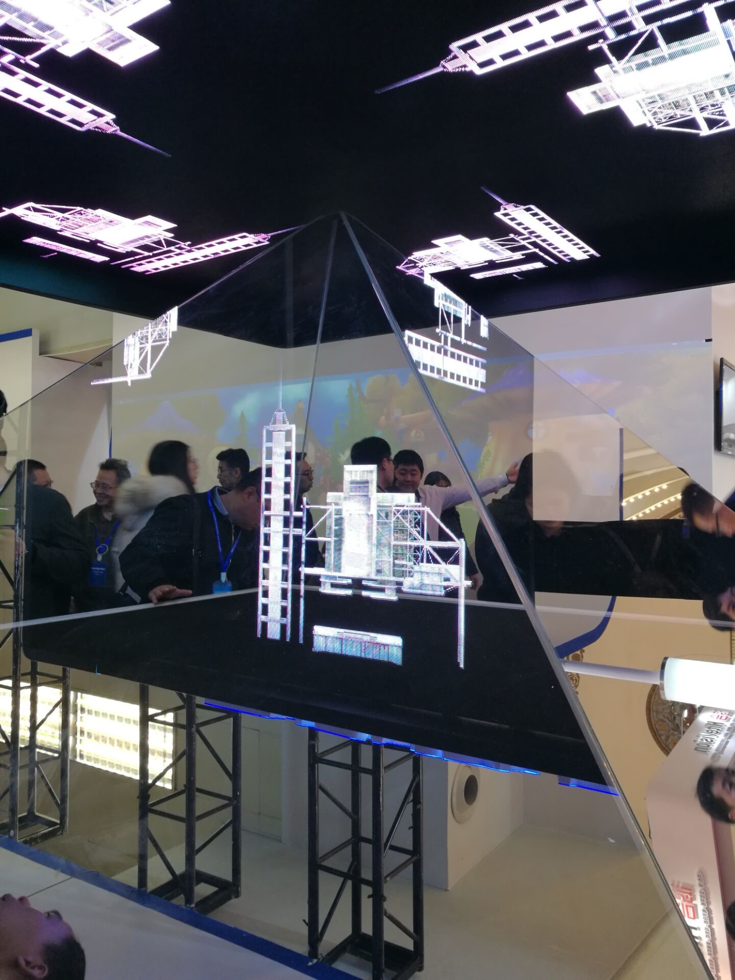 图片中的投影一下就吸引住了同学们,它的创意点在于360全方位都可以看到完全一致的图像投影。在以前课堂教学的实物展示环节,由于教室的空间或者同学数量等问题,无法保证每一个同学都能够将实物观察到位,如果利用此投影设备就可以很方便地保证每个角度的同学都可以看得仔细。