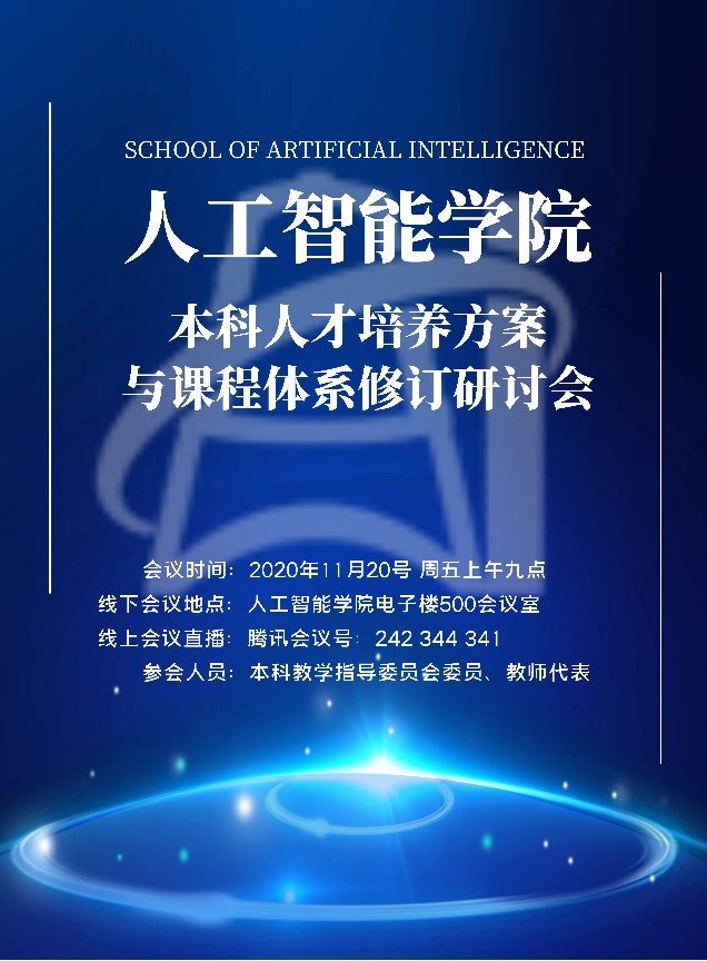 一、本科人才培养方案与课程体系修订研讨会——11月20日,本科人才培养方案与课程体系修订研讨会,于电子楼500会议室举行。本科教学副院长郭俊奇老师主持了会议,院长姚力老师、教师代表张家才老师、曾文艺老师、张立保老师、余先川老师、王醒策老师等人参加了会议。姚院长指出,在信息学科飞速发展的今天,学院的人才培养也要符合时代要求,在变化中寻求发展。会议围绕计算机科学与技术专业和人工智能专业的培养方案及课程体系的实施情况、现存问题及优化方案展开讨论,教师们根据自身教学体会和对本科人才培养的思考,结合2015班培养方案学生问卷调研结果,纷纷献言献策。会议同时以腾讯会议方式面向全院师生进行线上直播。