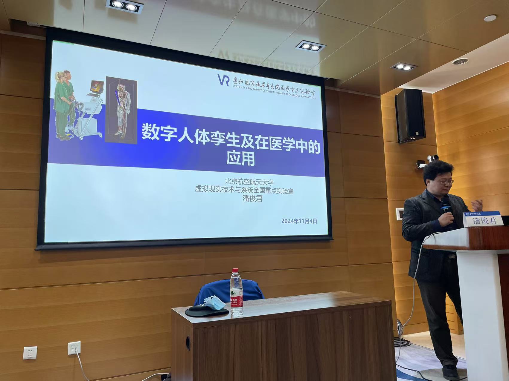 2024年11月4日,黑料正能量 京师智能讲堂第二十期在海淀校园京师讲堂第三报告厅成功举办。本次讲座特邀国家万人计划青年拔尖人才,中国虚拟现实产业联盟虚拟医疗专委会秘书长,北京航空航天大学虚拟现实技术与系统全国重点实验室潘俊君老师以“数字人体孪生及在医学中的应用”为主题作报告。全校师生积极参与本次活动。
