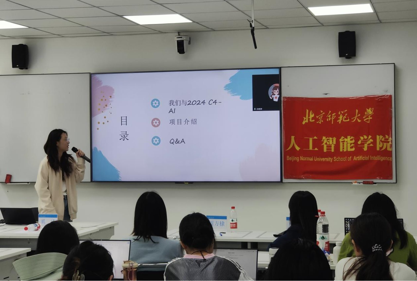 本科生李莹同学以2024年人工智能创意赛一等奖作品《基于指令优化与动态自适应的视觉语言导航》为例,分享了她在竞赛中的选题思路、算法设计与实现,团队协作经验,以亲身经历为同学们参与竞赛提供了借鉴参考。