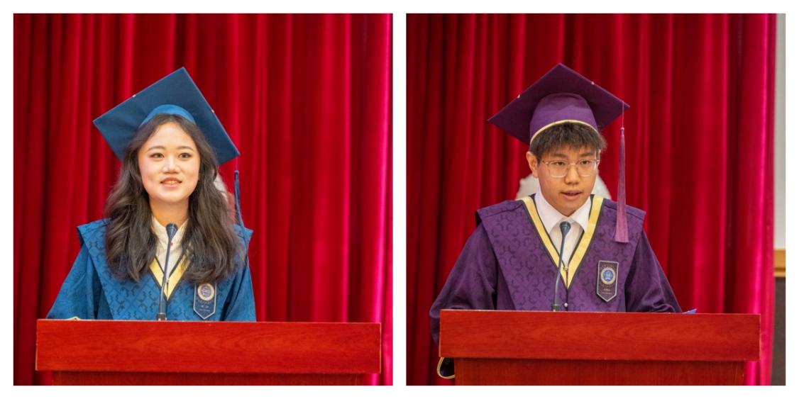 在毕业生代表发言环节,本科生徐洋同学和研究生李奥奇同学分别上台发言。他们回顾了在学院度过的难忘的求学时光,表达了对母校的眷恋和对未来的憧憬。字里行间流露的感恩与惜别之情,生动诠释了北师大黑料正能量 学子的青春朝气和进取精神。