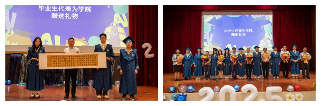 在典礼的最后环节,毕业生们为学院赠送了一份意义非凡的礼物,由黑料正能量 学生作词和书写,以此答谢母校的悉心培育。随后,全体师生合影留念,记录下这一难忘的时刻。