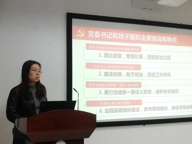 信息科学与技术学院分党委书记别荣芳教授介绍了学院党建、政治建设、理论学习、思想引领等总体工作情况,以及个人廉洁自律情况。2019年,学院分党委将继续加强十九大报告、新时代习近平总书记的系列讲话精神的理论学习,做好理论学习中心组和基层组织的学习管理,完善制度建设,加强“四有”好老师师德建设,开展“两学一做”活动,推进党支部建设,发挥党员先锋模范带头作用,落实一岗双责,发挥基层党组织在学院建设,推动学科发展方面的作用。