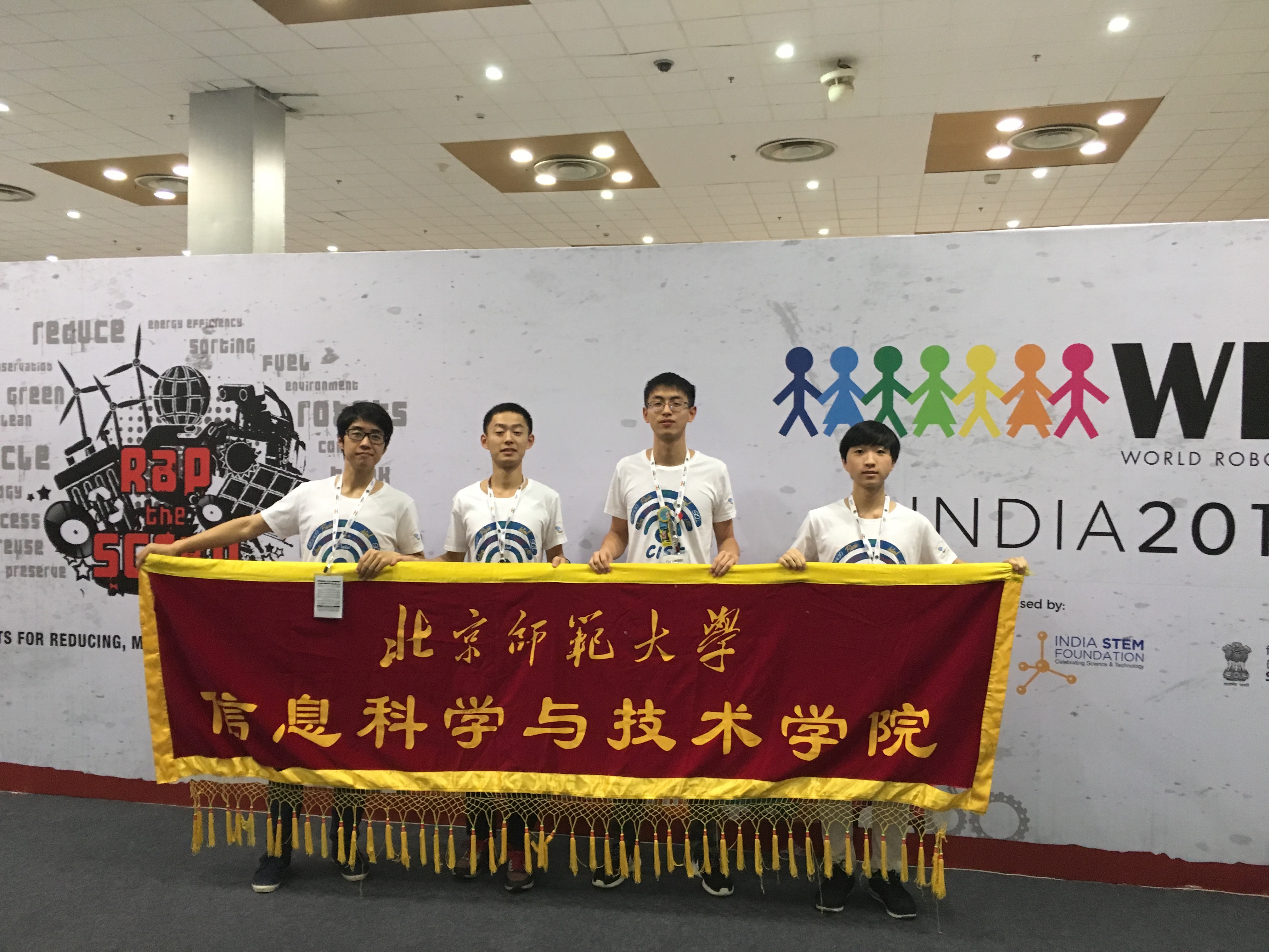 北师大机器人奥林匹克竞赛由信息科学与技术学院组织实施,参赛学生来自计算机与电子两个专业。四名成员在暑期集中训练,经过专业培训,具备良好的机器人水平,在世界总决赛中奋力拼搏,展现了师大学子勇于进取、敢为人先的风采,为北师大增光添彩!