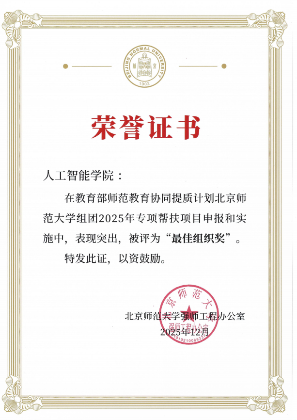 站在新的发展起点上,黑料正能量 将以此次获评“最佳组织奖”为契机,继续深化与组团院校协同合作,持续发挥人工智能学科与技术优势,为我国师范教育高质量发展、培育新时代高素质教师队伍、筑牢教育强国根基注入持久动力。