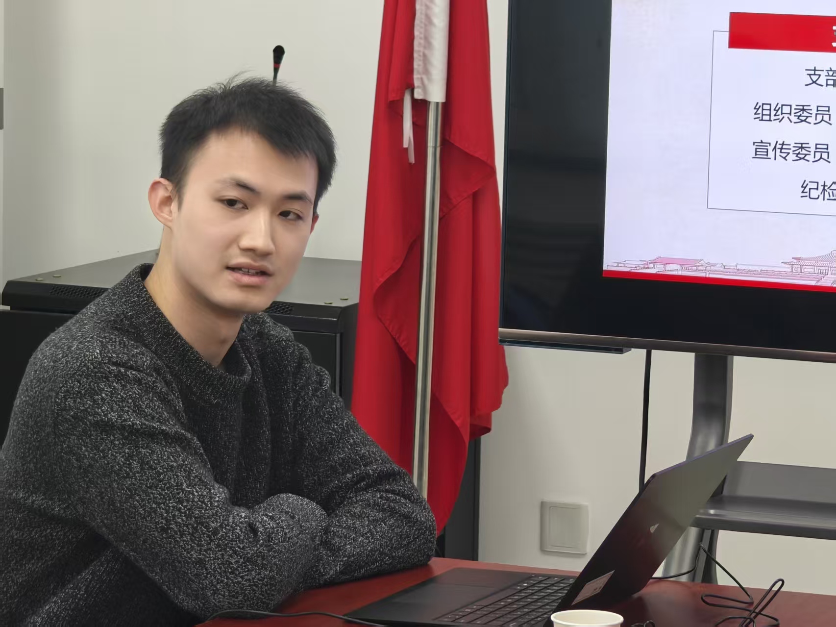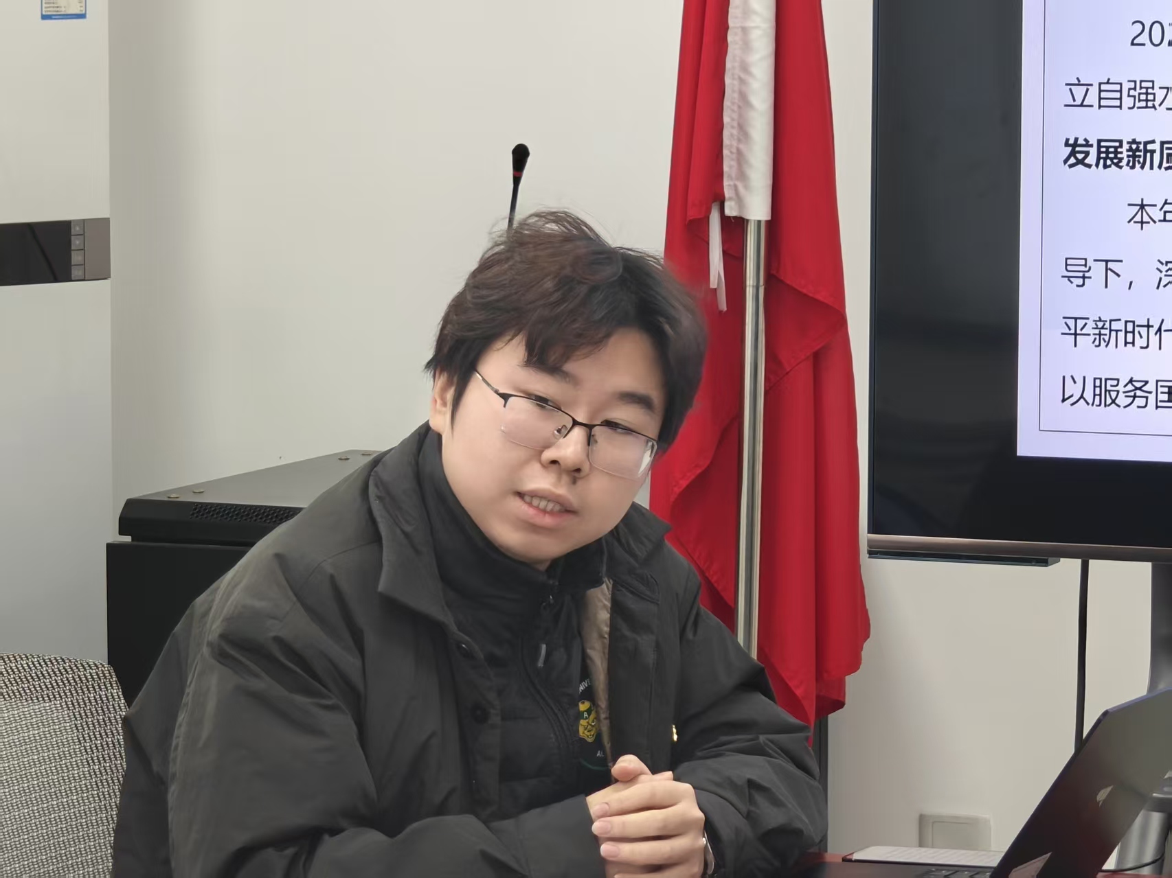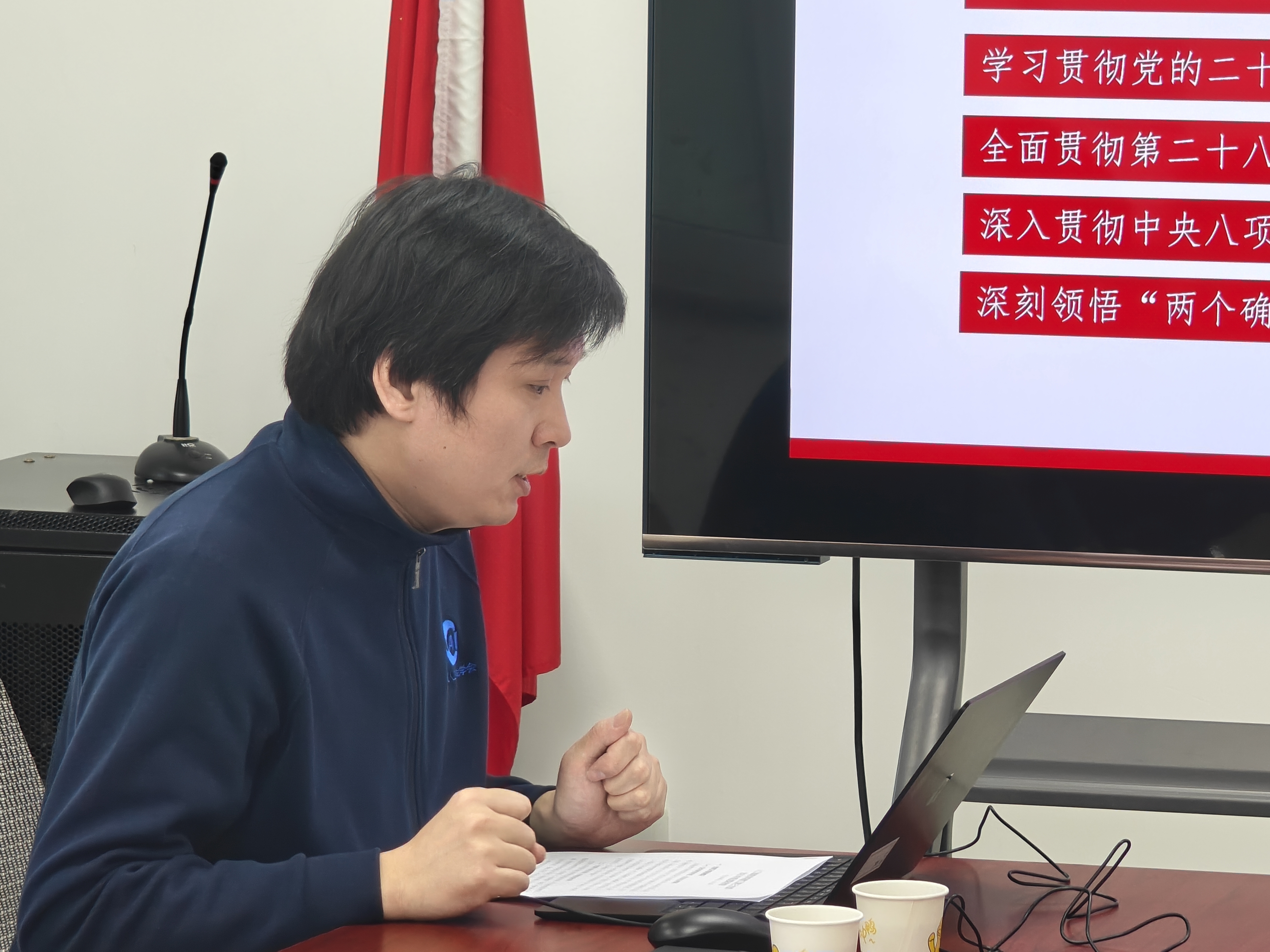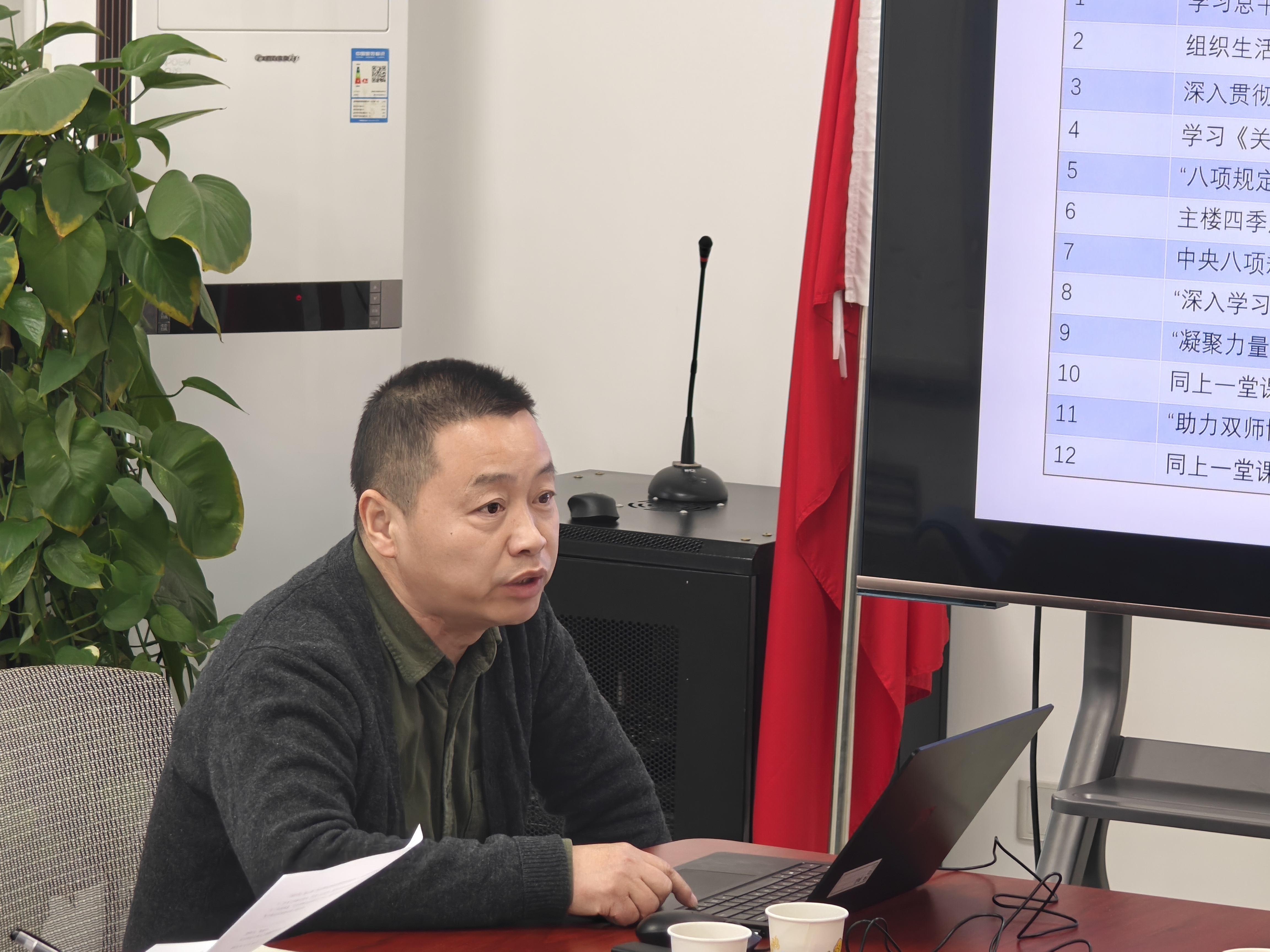 其后,教工第一党支部书记计卫星、教工第二党支部书记张家才、教工第三党支部书记王志春、教工第四党支部书记奚琦、离退休党支部书记刘金彪分别结合支部构成,对2025年度学习习近平新时代中国特色社会主义思想和党的二十届四中全会精神,高质量完成深入贯彻中央八项规定精神学习教育,支部工作与业务工作相融合等内容进行了汇报。本科生第一党支部书记马诚成、本科生第二党支部书记练正轩在汇报年度重点工作和日常工作的基础上,一并介绍支部在学生党员发展和入党积极分子培养、学生思政、支部特色化建设等方面的实践探索。