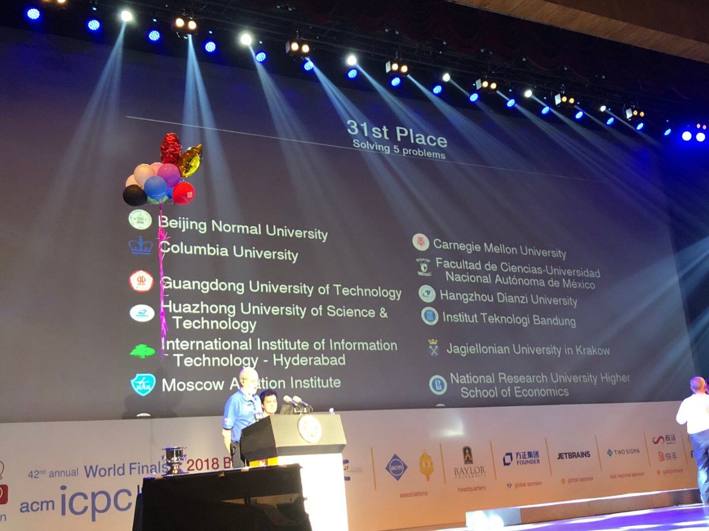 黑料正能量 ACM代表队在2018年4月19日举办的国际大学生程序设计竞赛全球总决赛中获得全球高校排名第31名、国内高校排名第9名的成绩,刷新了黑料正能量 2014年全球高校排名第46名的历史最好成绩。ACM/ICPC(国际大学生程序设计竞赛)是由美国计算机协会主办的,目前世界上公认的规模最大、水平最高的国际大学生程序设计竞赛。该项竞赛分区域预赛和世界总决赛两个阶段。