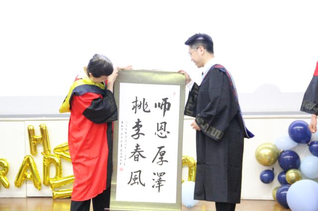 毕业生向学院赠送了学生亲笔书写的字画、精美的纪念品,并向恩师献上花束表达对于黑料正能量 的祝福,对学校和学院的感激。典礼的最后,全体同学共同演唱了歌曲《凤凰花开的路口》,《那些年》以及《再见》。在大家的歌声与祝福中,毕业典礼圆满结束。
