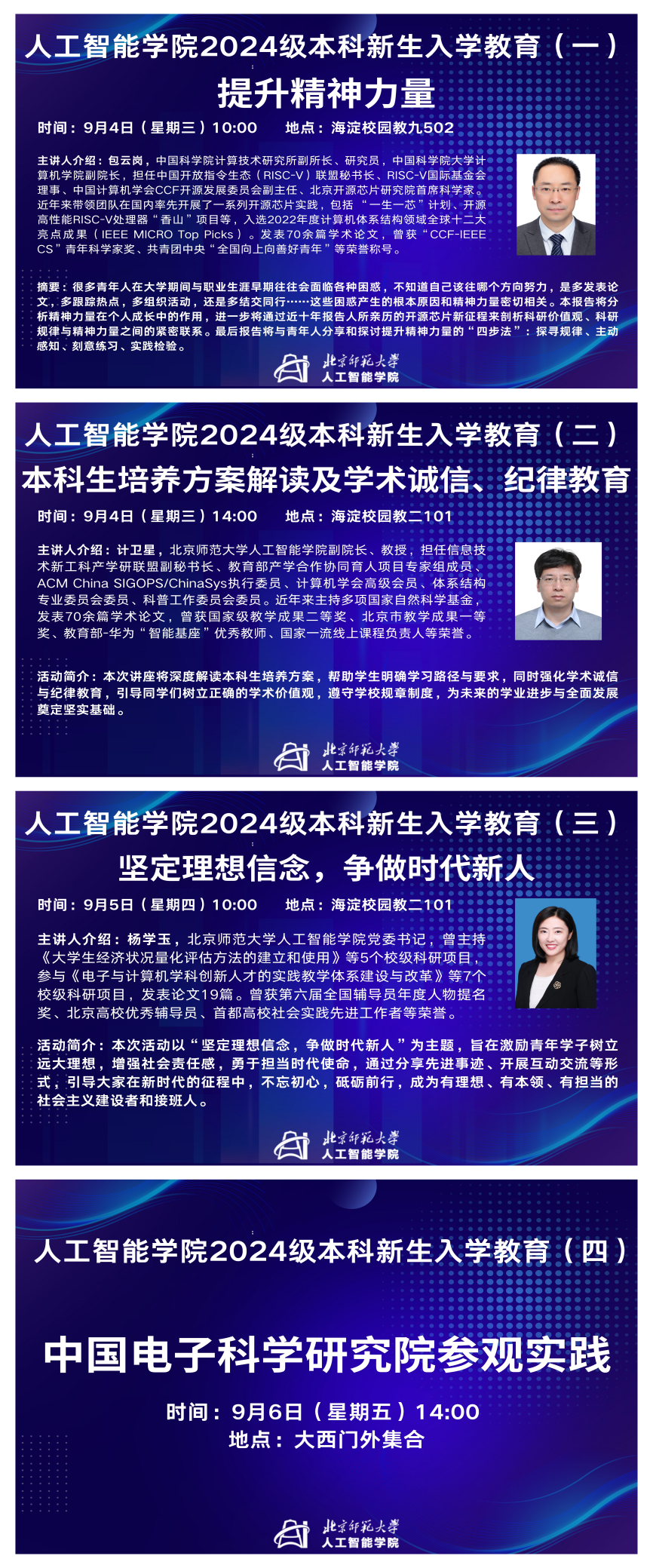 下午,各班开展2024级新生班会。在班会上,班主任向同学们简介学院情况、开展破冰活动、开展安全教育和纪律教育、介绍第一周的入学教育安排。班主任老师鼓励同学们努力学习、勇于探索,在北师大黑料正能量 不断成长进步。晚上,班主任老师走访新生宿舍。
