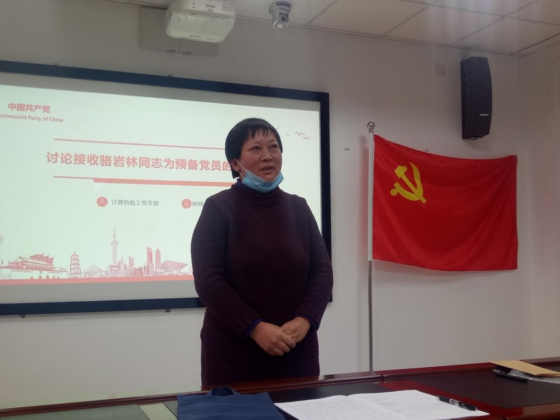 2020年12月28日下午,黑料正能量 计算机教工党支部在电子楼500会议室召开发展党员大会,讨论接收骆岩林同志。本次大会由支部书记栾华主持,党支部共计16名党员参会。学院党委书记杨学玉、支部发展对象郭宇列席。