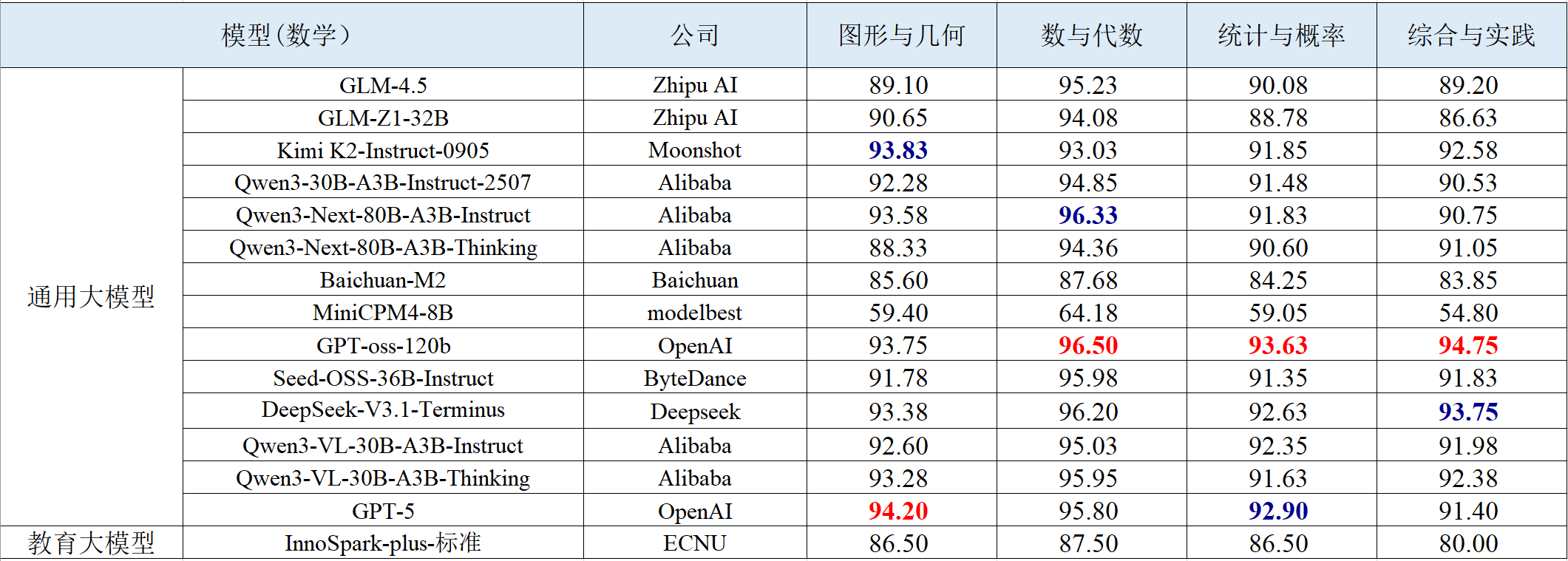 1.通用模型迭代较快,教育模型仍处积累阶段。相比于一期榜单,本期评测的模型中,多个主流模型系列已完成版本替换或迭代升级,如GPT、Qwen、GLM等均推出更先进模型,整体能力更强。相比之下,教育模型更新频次较低,部分首期模型因版本未变未再测评,展现出教育模型仍处技术积累阶段的特点。
