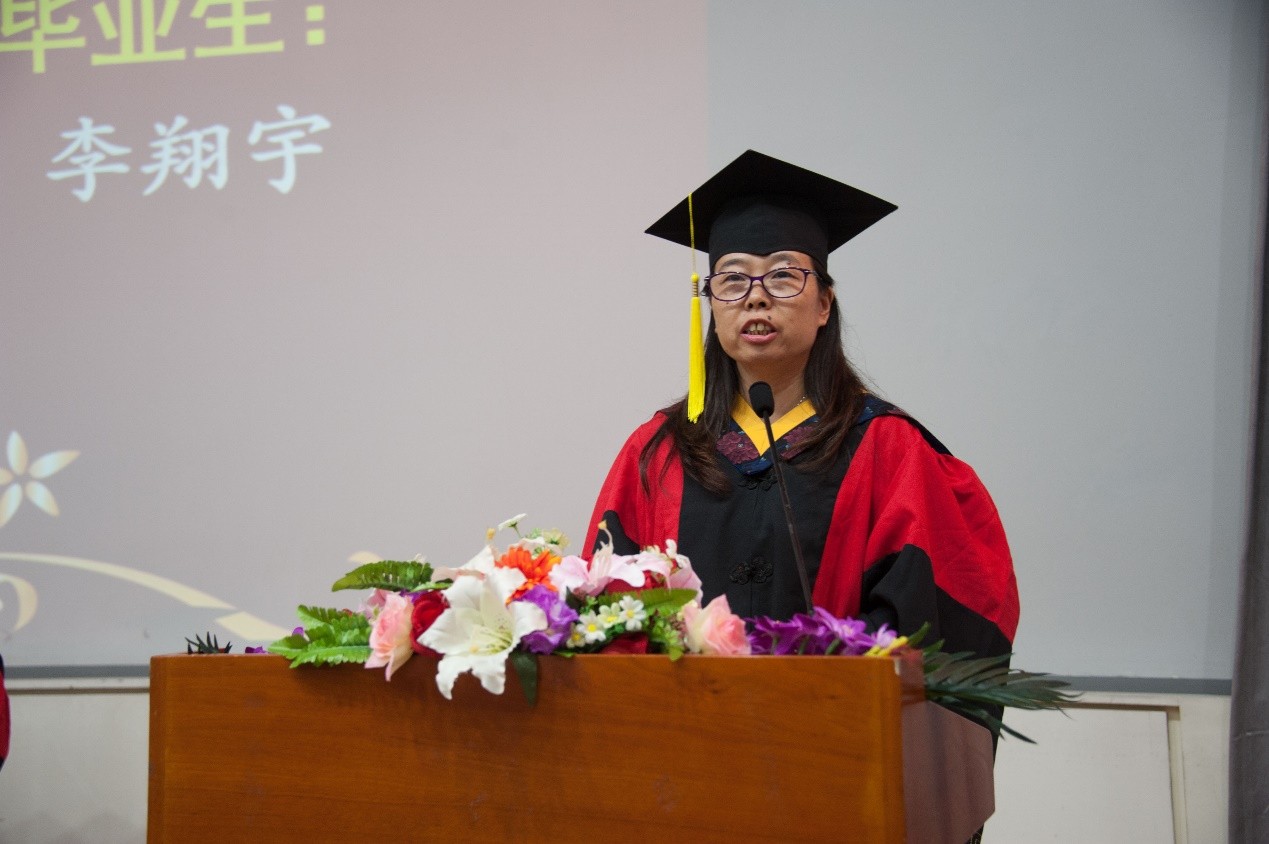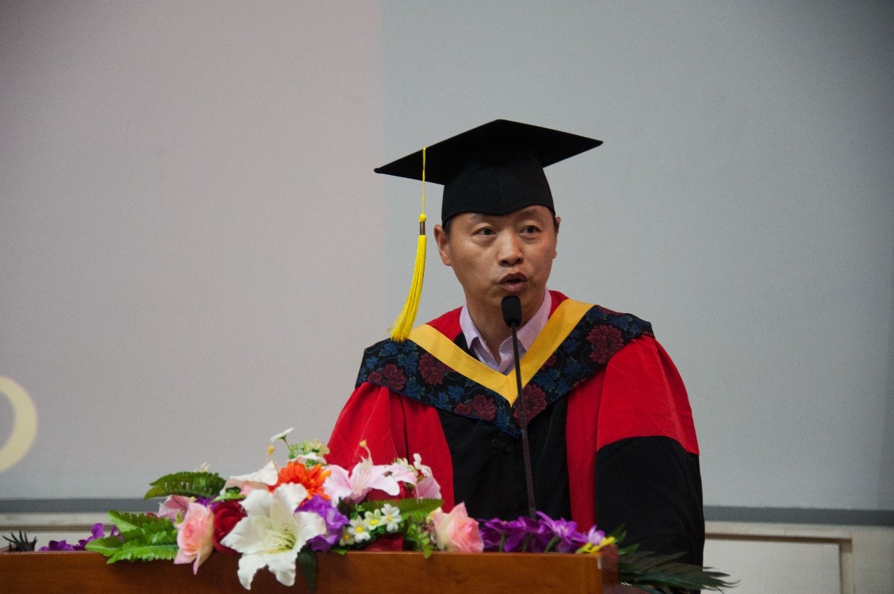 接着,毕业研究生代表李冉冉和毕业本科生代表李翔宇分别发言,表达了毕业生对学校、学院的感谢,对老师辛勤培育的感恩,并表达了努力学习工作以回报母校回报社会的决心。教师代表余乐军老师回忆了与学生们生活的点点滴滴,对毕业生圆满毕业表达了祝贺并送上美好祝愿。