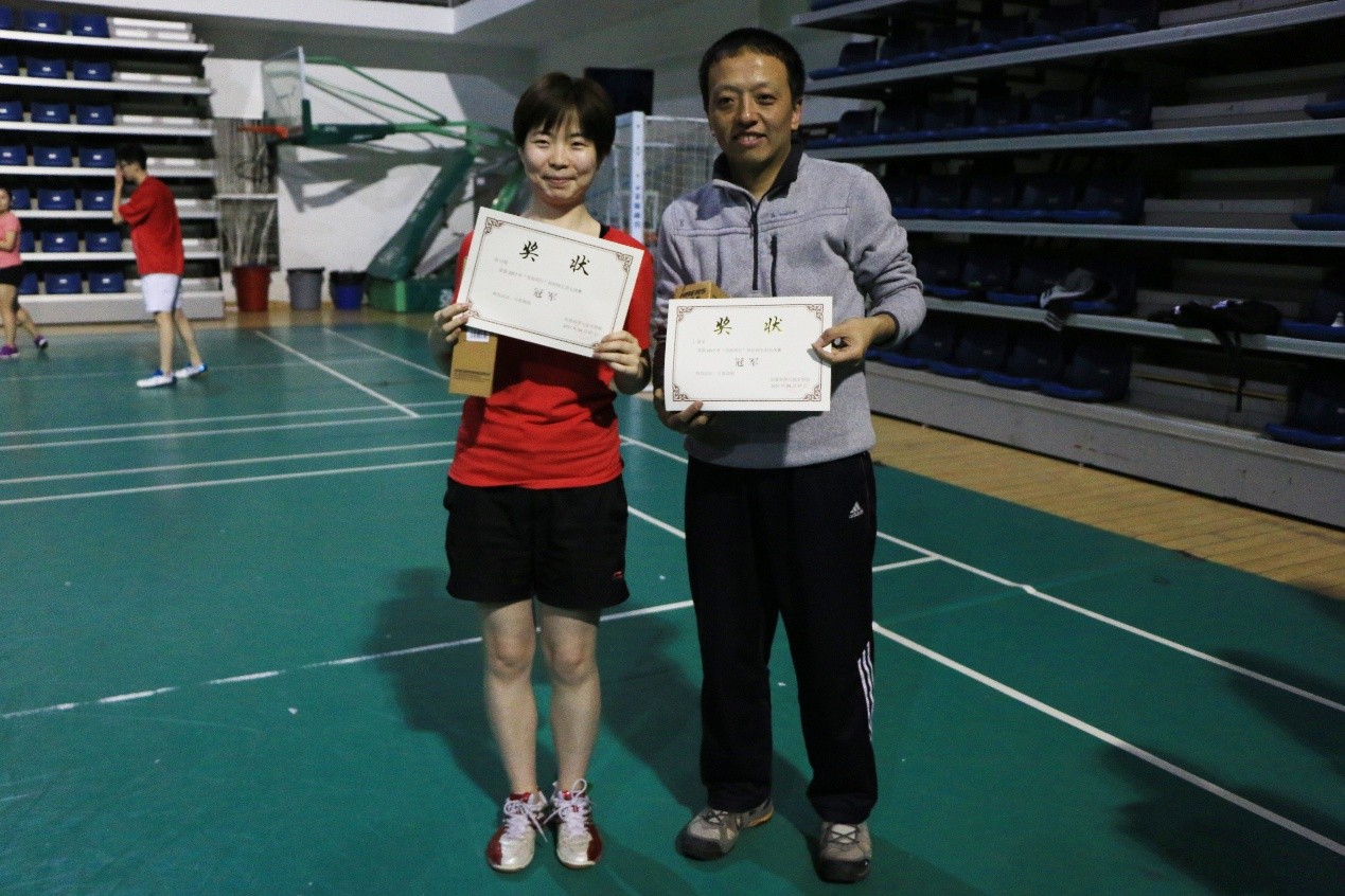 本次比赛由信息科学与技术学院研究生会和生活指导室共同承办,并得到全院师生的广泛关注和大力支持,50名师生组成25支混双队伍参加了本次比赛。在整场比赛中工作人员以及裁判员尽职尽责,切实保障了比赛公平公正的进行。比赛分为三轮,一轮淘汰赛,各组队员团结协作,紧密配合,赛程激烈。最后决赛过程中,各参赛队伍更是全神贯注,愈战愈勇,观赛的师生时时拍手叫好,一阵阵喝彩声飘荡在赛场上,球技卓越的师生凭借此场比赛收获了一大批粉丝,更是吸引了一大批同学加入到羽毛球这项运动中来。