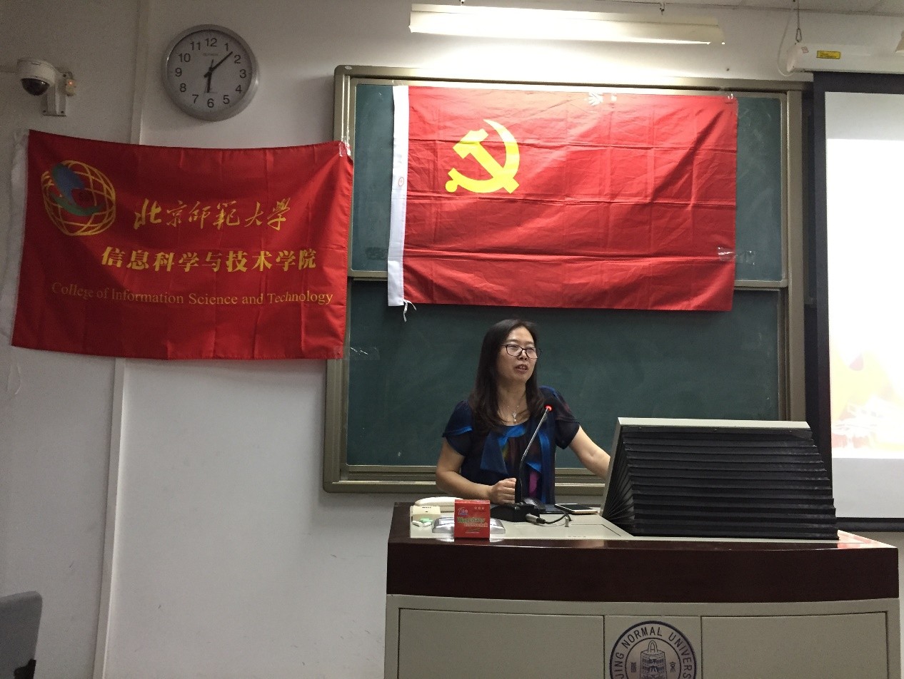 别荣芳教授首先对信息技术的发展历程进行了概述,通过观看信息技术相关短片,带领大家了解了互联网+,云计算,大数据,AI等信息科学领域前沿技术的最新进展。结合国家信息技术发展的相关政策和规划,通过现实案例说明核心技术发展的重要性,强调国家信息科学技术发展进程中共产党人肩负的责任。最后,别荣芳教授谈及作为共产党员的情怀在信息科学技术飞速发展的当今社会的重要性。