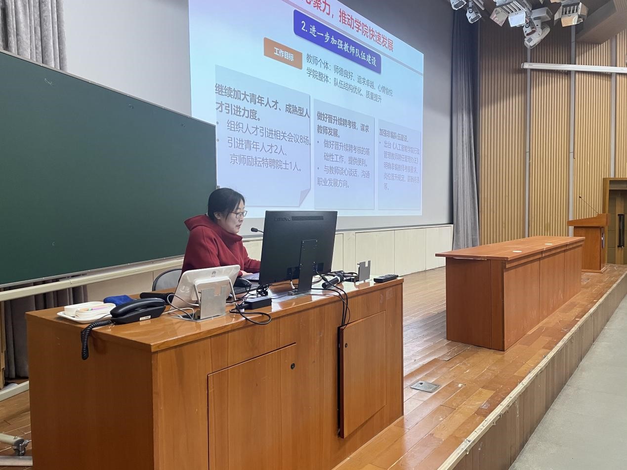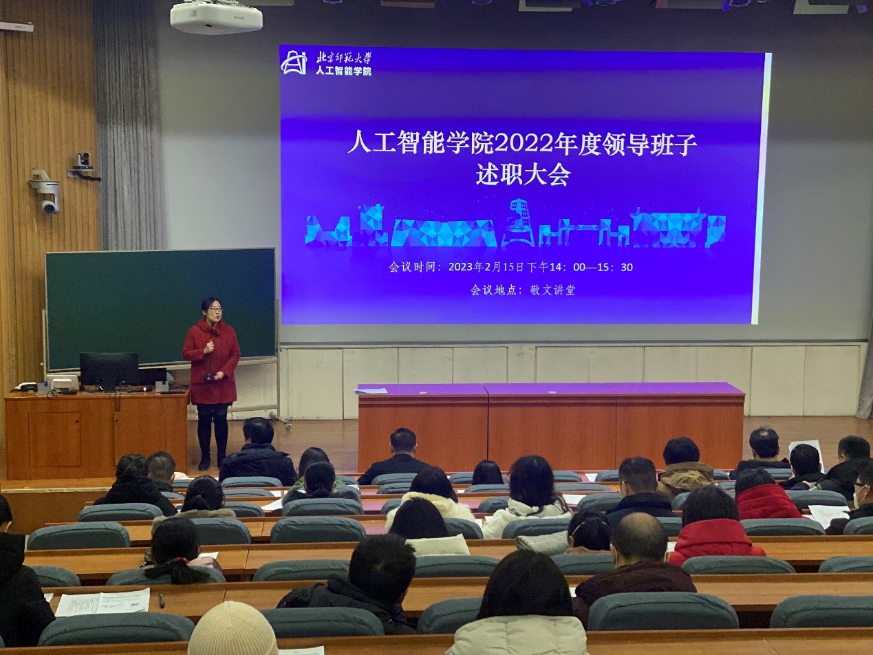 2023年2月15日,学院召开全院教师大会,开展2022年度学院领导班子述职述廉工作,分析当前学院发展面临的形势并提出思考和讨论。学院全体教职工参加会议,党委书记杨学玉主持会议。