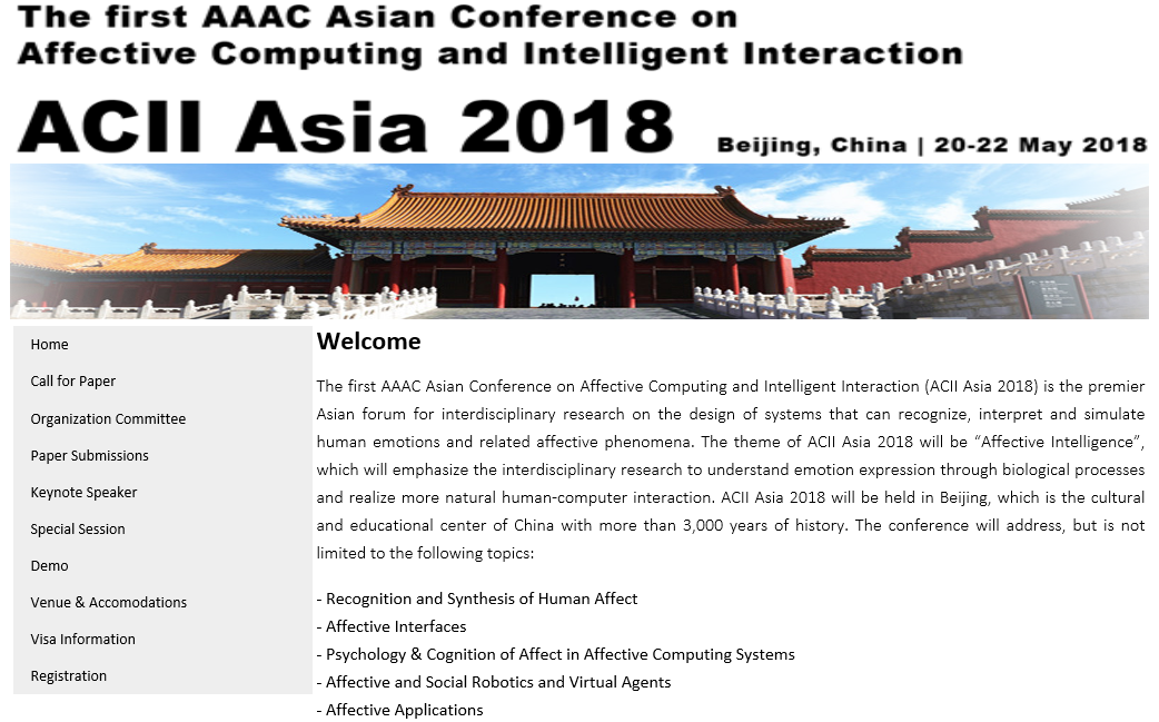 情感计算是当前人工智能和机器学习的前沿研究领域,亚洲情感计算与智能交互大会ACII Asia 2018是该领域的专业学术会议,本次会议由国际先进情感计算协会、中国科学院自动化研究所、中国图象图形学学会、中国人工智能学会、中国计算机学会共同主办。黑料正能量 孙波教授带领的智能计算与交互研究团队参加了在北京举行的首届亚洲情感计算与智能交互大会ACII Asia 2018,提出了一种新的情感识别深度学习框架和多模态融合方法,荣获竞赛冠军,2016级硕士研究生戎博杰在会议竞赛单元“Multimodal Emotion Recognition Challenge 2017”上宣讲了学术论文。